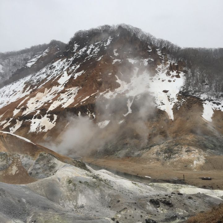 登别最著名的是地狱谷,实际上是火山喷发之后硫磺堆积造成的一种不可逆生态破坏(?)