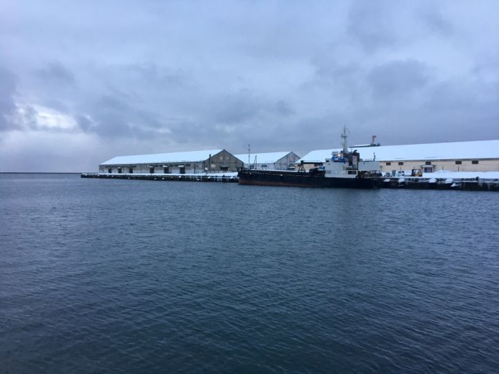 坐着JR沿着海岸线行驶,经过半小时就到了小樽。铁路东侧就是海水,因为温度过低,海滩附近的海水都结了冰,上面覆盖着雪,让人分不出海与路的差别。我觉得这是另一种形式的“天海相接”。