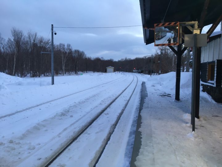 之后我坐着蒸汽小火车,穿梭在雪林当中,那个火车很短,就三四节,车里有附近的老婆婆,也有世界旅行的游者。火车穿过一片苔原,然后行驶在海洋和陆地的边缘,就这么走了3个小时,之后换乘了一班列车,第一次感受到林海雪原